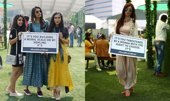 A kép Indiában a Lakme Fashion Week-en készült, ahol a nők az ellen tiltakoznak, hogy a férfiak határozzák meg hogyan öltözködjenek. #NotWhatIWear azaz #NeMonddMegMitViseljek . ITT elolvashatjátok az erről szóló cikket is.