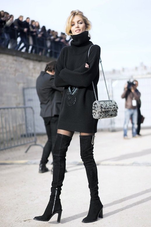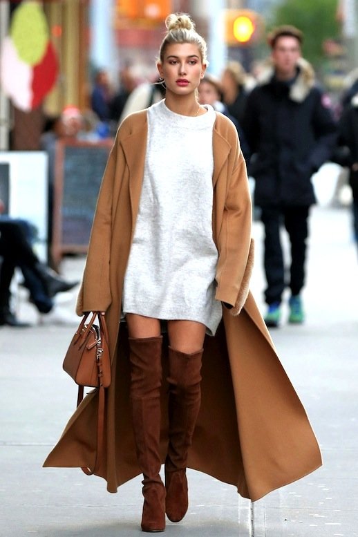 Forrás: Le Fashion Blog / Haley Baldwin Stuart Weitzman csizmában és Givenchy táskával